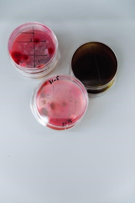 The observations and results section documents all experimental findings, including colony morphology, Gram staining outcomes, and biochemical test reactions. Physical characteristics such as colony color, shape, and texture are recorded. Staining techniques reveal cellular details, while enzymatic tests indicate metabolic capabilities. Sugar fermentation tests show acid production, and selective media isolate specific bacteria. Advanced methods like API strips or DNA sequencing provide precise identification. These observations are systematically recorded and compared to reference data for accurate species determination. This section serves as the foundation for interpreting bacterial characteristics and drawing conclusions about the unknown bacterium’s identity. All data is presented objectively, forming the basis for further analysis.